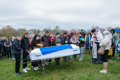 Прощаючись із Героєм кожен кинув до його могили по три жмені землі.